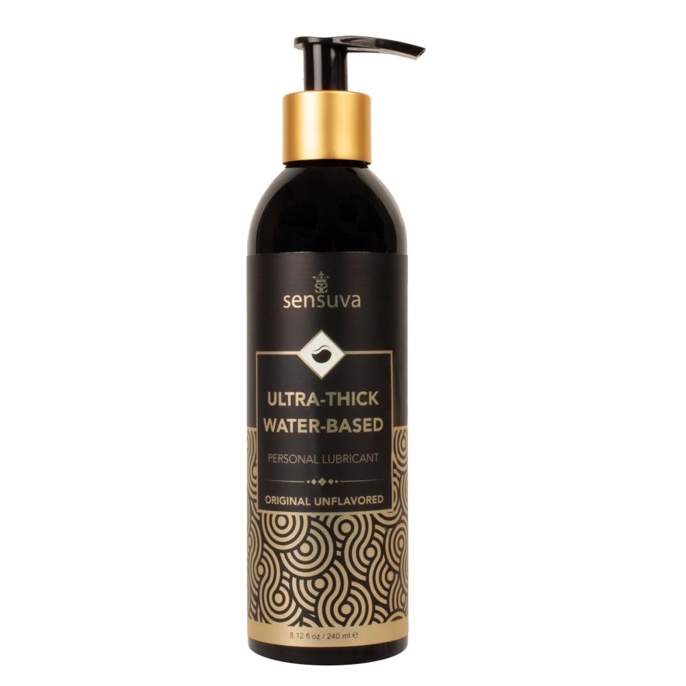 Якщо вам потрібна густа та довгогральна змазка, і при цьому не підходить силіконова, рекомендуємо купити лубрикант на водній основі Sensuva — Ultra–Thick Water-Based. Приємний, щільної консистенції, цей лубрикант забезпечує легке та довге ковзання й приємне зволоження слизової та шкіри. Майже без запаху, він не липне і просто змивається.